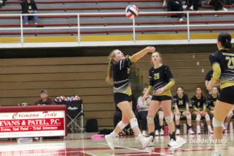 Mahanoy Area hit better and reduced its errors in the second set to level the match with a 25-23 victory. A Naomi Kowalick kill and a Pine Grove error gave the Golden Bears the set.