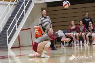 In the opener, better hitting and fewer errors lifted Pine Grove to the early lead. Tied at 19, the Cardinals capped the set with a 6-1 run. A dink into the open court by Kamryn Heming keyed the run and the 25-20 win.
