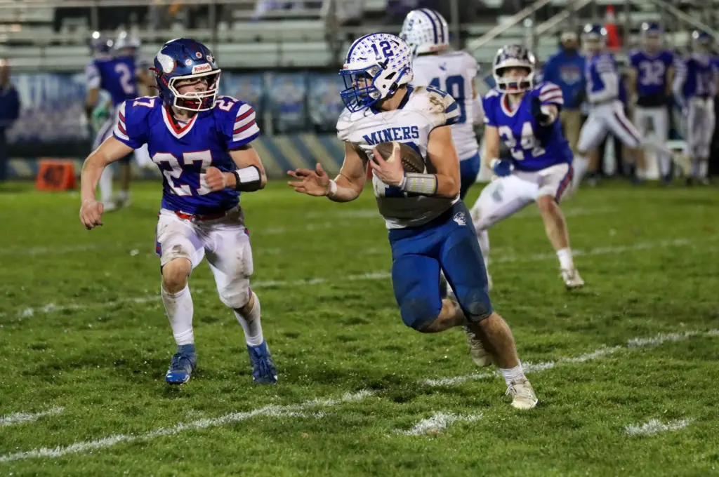 Minersville finally got its offense going in the second half but never got closer than 21 points. The final time came on a 65-yard touchdown pass from Carr to Derek Derenzo with 3:57 left in the game to set the final.