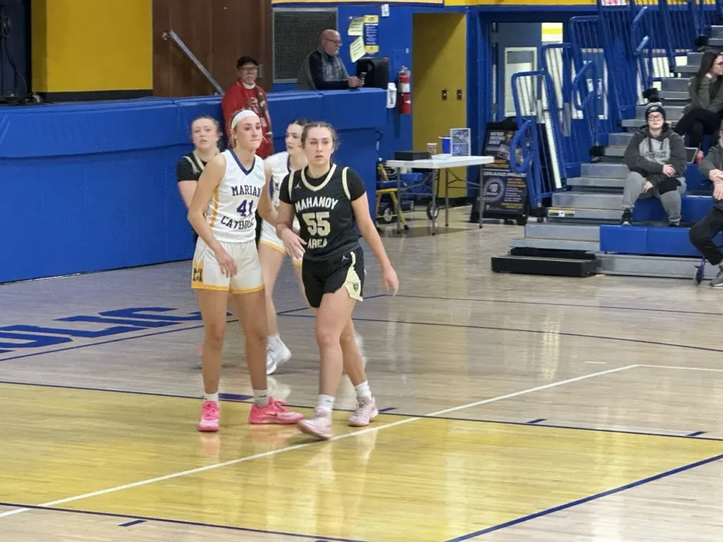 Marek returned in the second quarter and scored four points but Mahanoy Area’s defense shut her down for most of the game. Marek finished with just eight points and had 13 rebounds. Deanna Pugh led the way for Marian with 17 points.