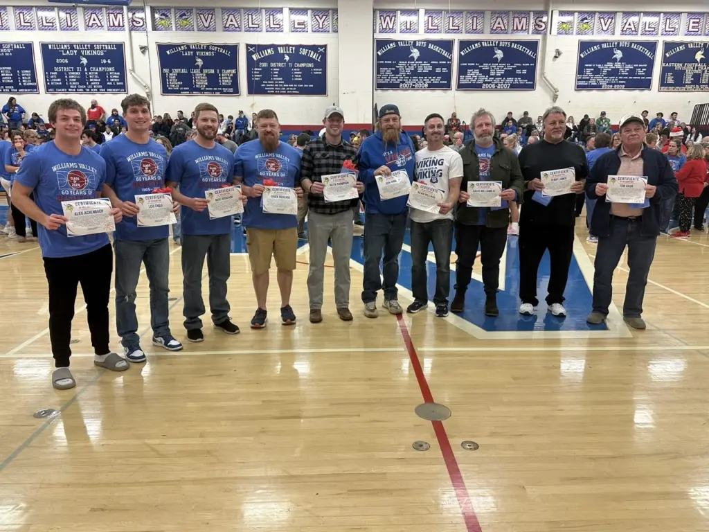 Williams Valley invited all its basketball alumni to Monday’s celebration, which featured a boys/girls doubleheader. The night also included special blue T-shirts worn by the alumni, coaches and current players in attendance, and youth games during halftime of both two varsity games.