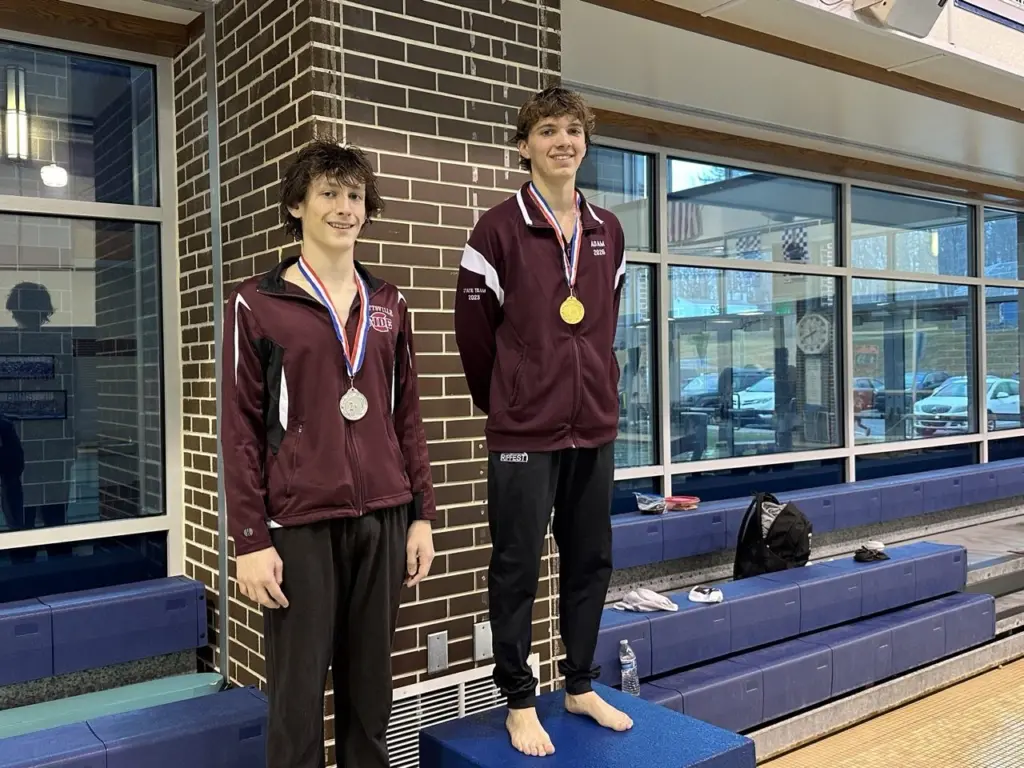 Pottsville's Adam Klinger, left, and Blue Mountain's Shyanna White were the champions of the 2026 Schuylkill League Diving Invitational held Saturday at Blue Mountain's Glen Belmont Natatorium (Photo by Leroy Boyer).
