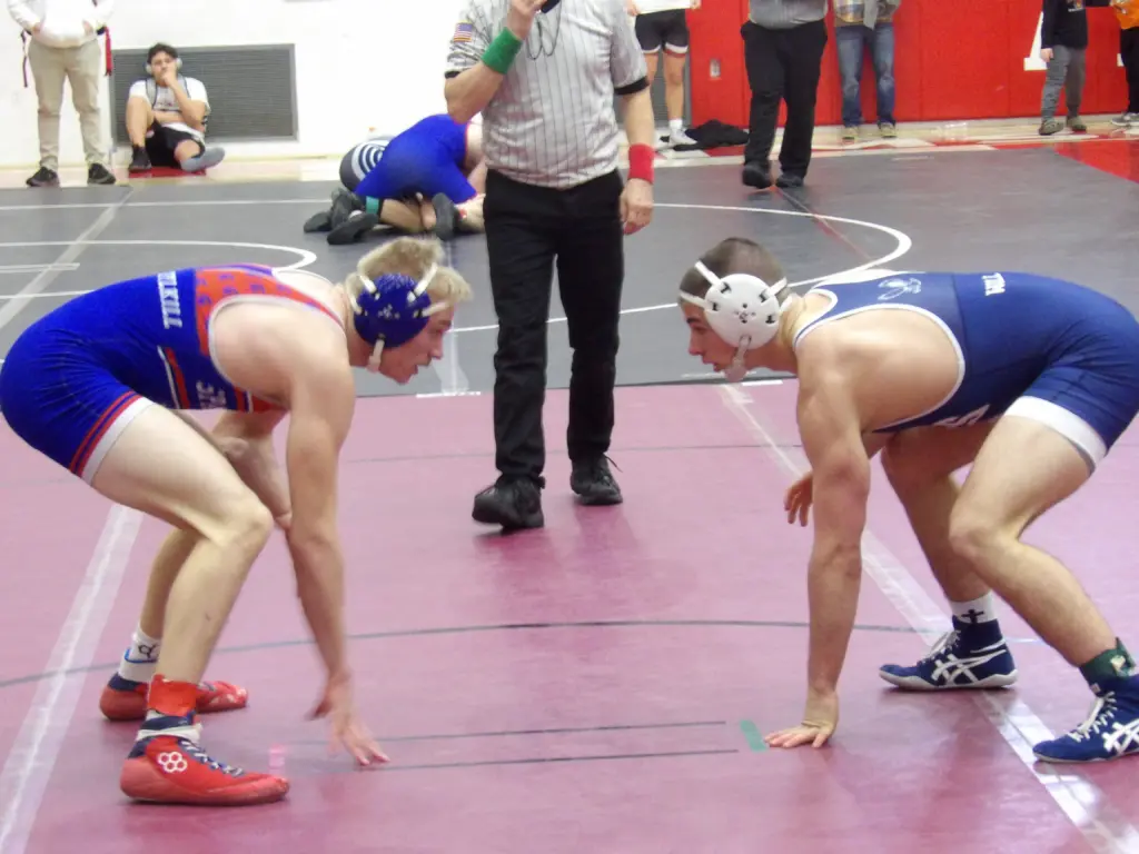 Likewise, Woll became a three-time league champion, pinning North Schuylkill’s Bryce Kile in 3:27 to earn the 160-pound crown. In his first match of the day, Woll flattened Panther Valley’s Cameron Rolon in 31 seconds to record pin No. 100 for his career. Woll (26-3) scored three falls in all, giving him 102 for his career.