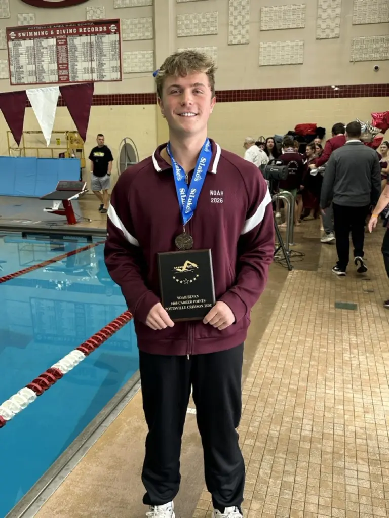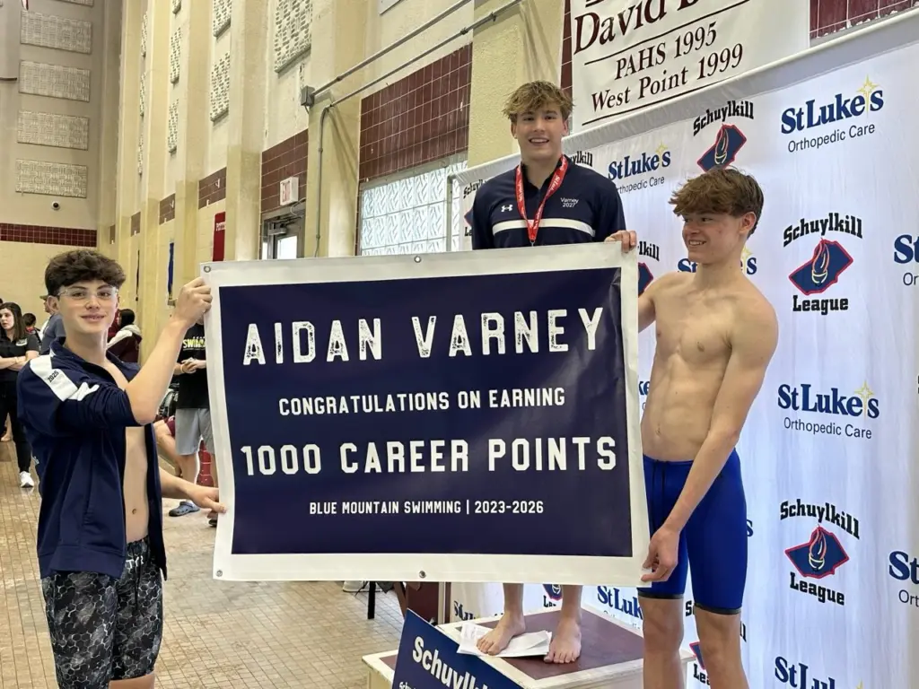 He’s the fourth Blue Mountain boys’ swimmer to reach 1,000 points this season, joining Gabe Kamarousky, Liam Magdeburg and Moyer.