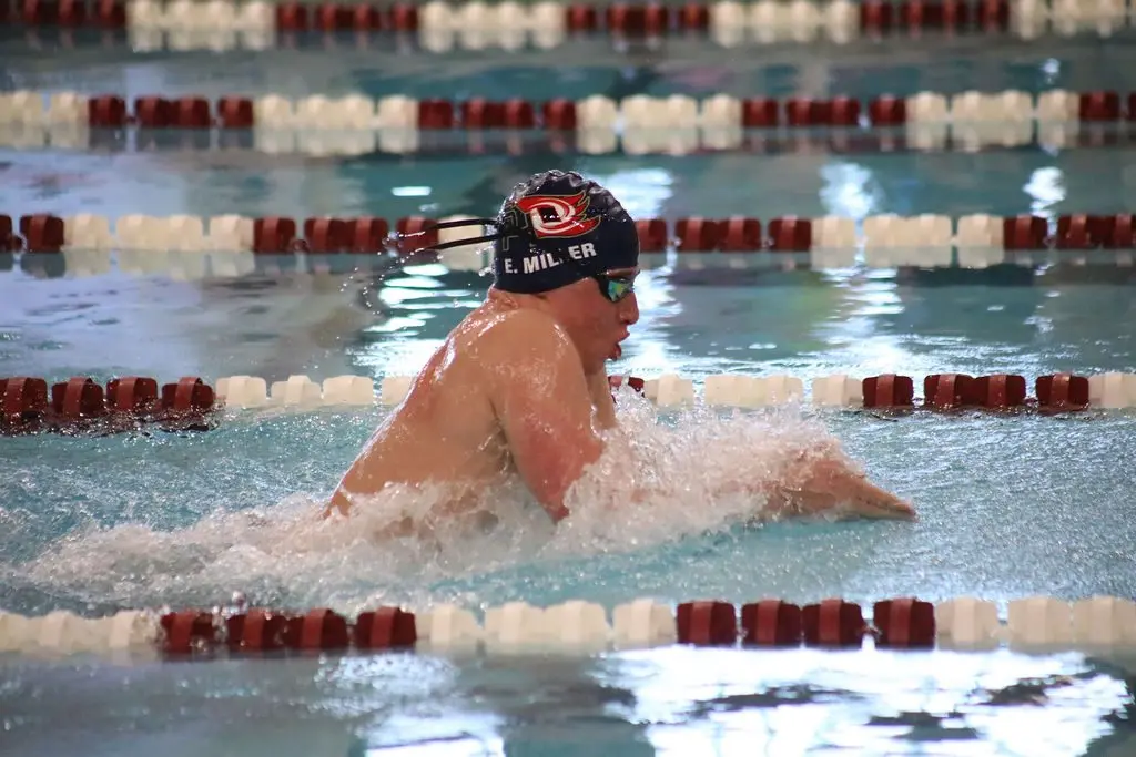 Miller, also a sophomore, is bulked up from last season. He won both of his races convincingly, taking the 200 IM by 7.15 seconds over Blue Mountain’s Seth Nester and the 100 backstroke by 5.80 seconds over Blue Mountain’s Zach Scala.