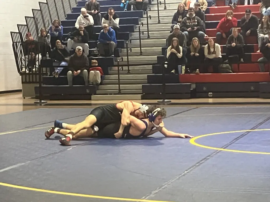 Moving up to 215, Max Masser scored three takedowns before sinking a deep armbar to pin Brody Moody in 5:19. Donovan Keeth, giving up 35 pounds to Connor Horger at 285, won a scramble, reversing Horger to his back for the fall in 1:48.