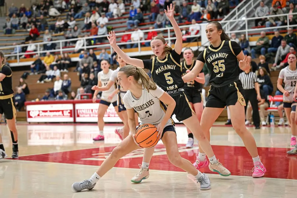 The Hurricanes led 43-31 after three quarters. Mahanoy Area sliced the deficit to nine, at 45-36, with 6:17 remaining, but Runkle scored on a short jumper and a scoop shot to up the lead back to double digits. The Bears didn’t threaten the rest of the way.