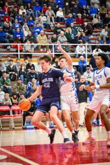 “We told the guys if we could just get it close by halftime, we’ve tended to be a third-quarter team,” George said. “That’s kind of been our calling card. Let’s just get this close by halftime and we know what we do in the third. We didn’t shoot well tonight either. Give Blue Mountain credit — I thought they looked more loose, more comfortable, and they had already played here the other day. All credit to them. They were great. They came out and punched us right in the mouth. I said it was going to be a heavyweight fight. Usually it’s us punching teams early, but tonight Blue Mountain came right at us.”