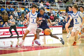 “I don’t think I need to say much,” George said of his message heading into the title game. “We probably won’t talk about last year much. I was here for that game — it was a heck of a game. It went back-and-forth and could have gone either way. But we’re trying to focus on being a new team and making our own path. A lot of these guys were on the court in some way last year, so they feel it. I don’t think we’re going to have to give any kind of pep talk before Friday night. It’s Pottsville. It’s Martz Hall. It’s a league title.”