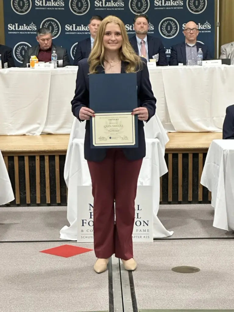 Frohnheiser was named the 2026 Schuylkill Chapter No. 25 National Football Foundation and College Hall of Fame Scholar-Athlete during the chapter’s 65th annual awards dinner Sunday at the Schuylkill IU 29.
