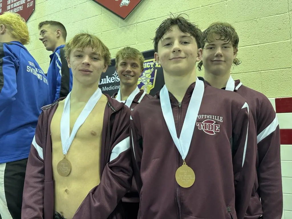 ** In the 200 medley relay, the Pottsville quartet of Ashton Maroukis, Jamison Walsh, John Mohl and Bevan was third in 1:44.48. The Blue Mountain foursome of Evan Varney, Zach Scala, Seth Nester and Gabe Kamarousky was fourth in 1:45.94.