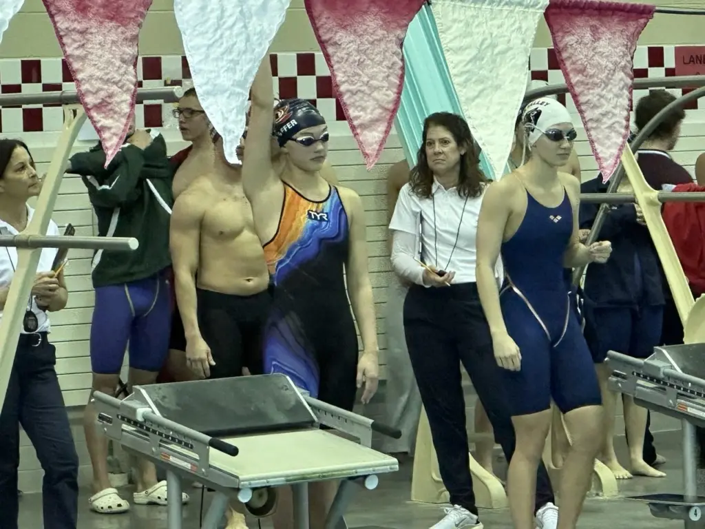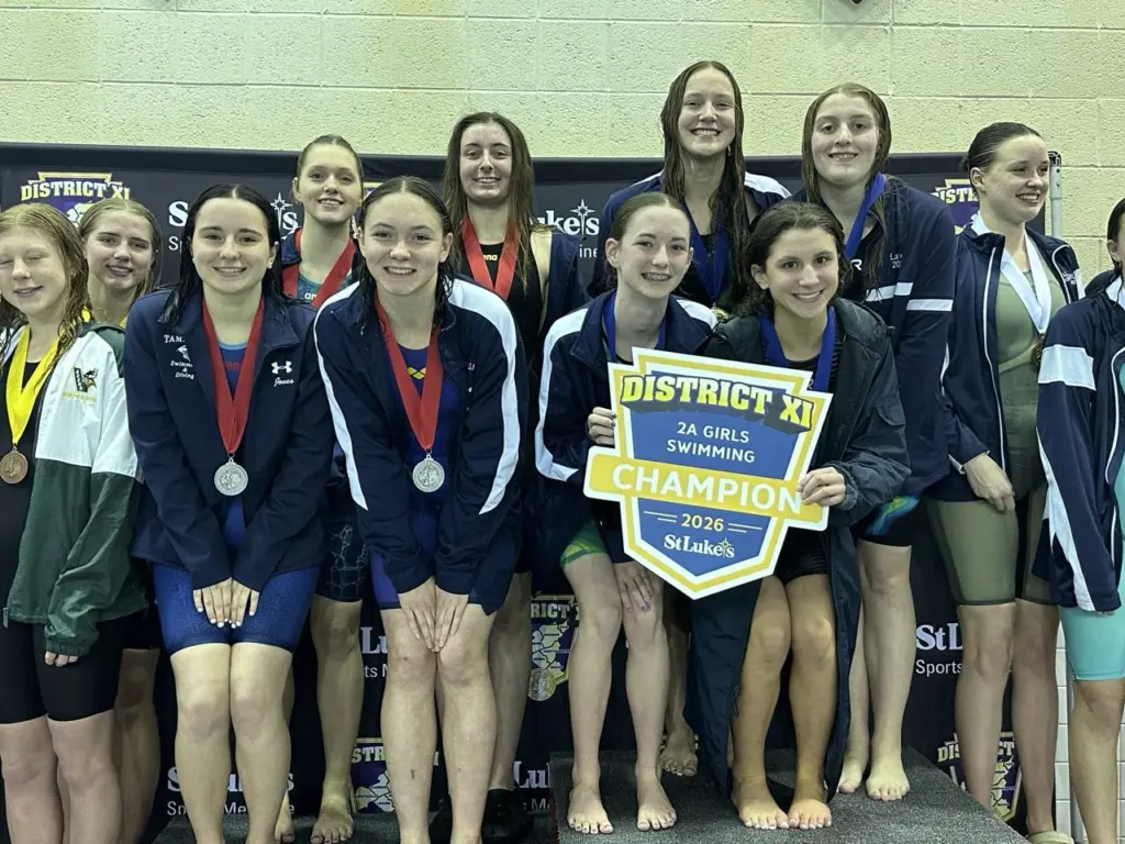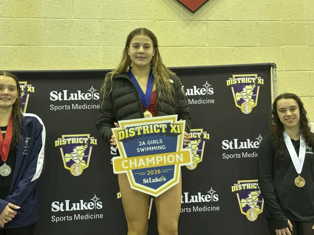 On the boys’ side, Marian’s Michael Strucko and Blue Mountain’s Brody Moyer also climbing to the top of the podium (see related story: https://www.t102sportsnow.com/2026/02/20/d-11-boys-swimming-eagles-moyer-marians-strucko-race-to-district-11-gold/)