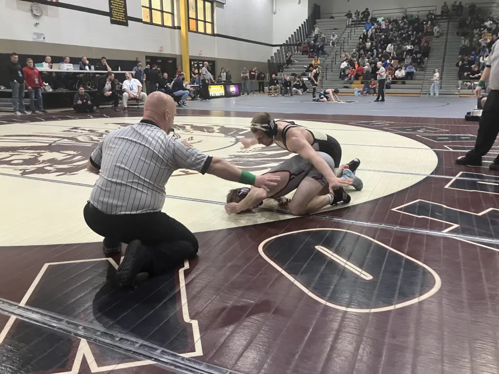 In the 107-pound final, North Schuylkill’s Gaige Mentusky scored the first takedown, but Wolfgang quickly worked off bottom with a reversal. A hammer on top, Wolfgang (35-7) turned Mentusky with legs and a half nelson for the fall in 1:30. Wolfgang defeated all three district opponents by first-period falls.