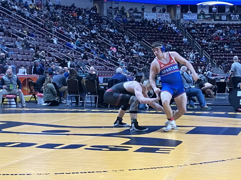 215 — Logan Latimore (North East) pinned Cadyn McGraw (North Schuylkill), 2:32
