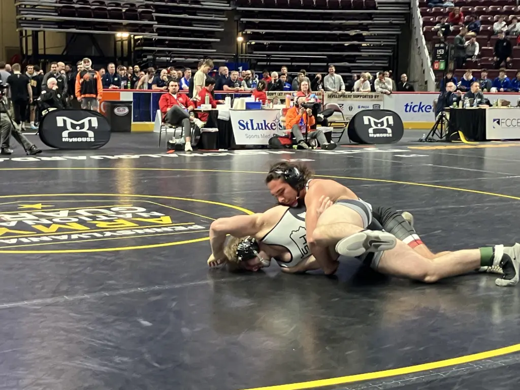 McFarland looked sharp against Spielman, an eighth-place medalist at states last season. In the first period, McFarland grabbed a body lock, worked behind and took Spielman to the mat for the initial takedown. Spielman escaped to trail 3-1 after one period.