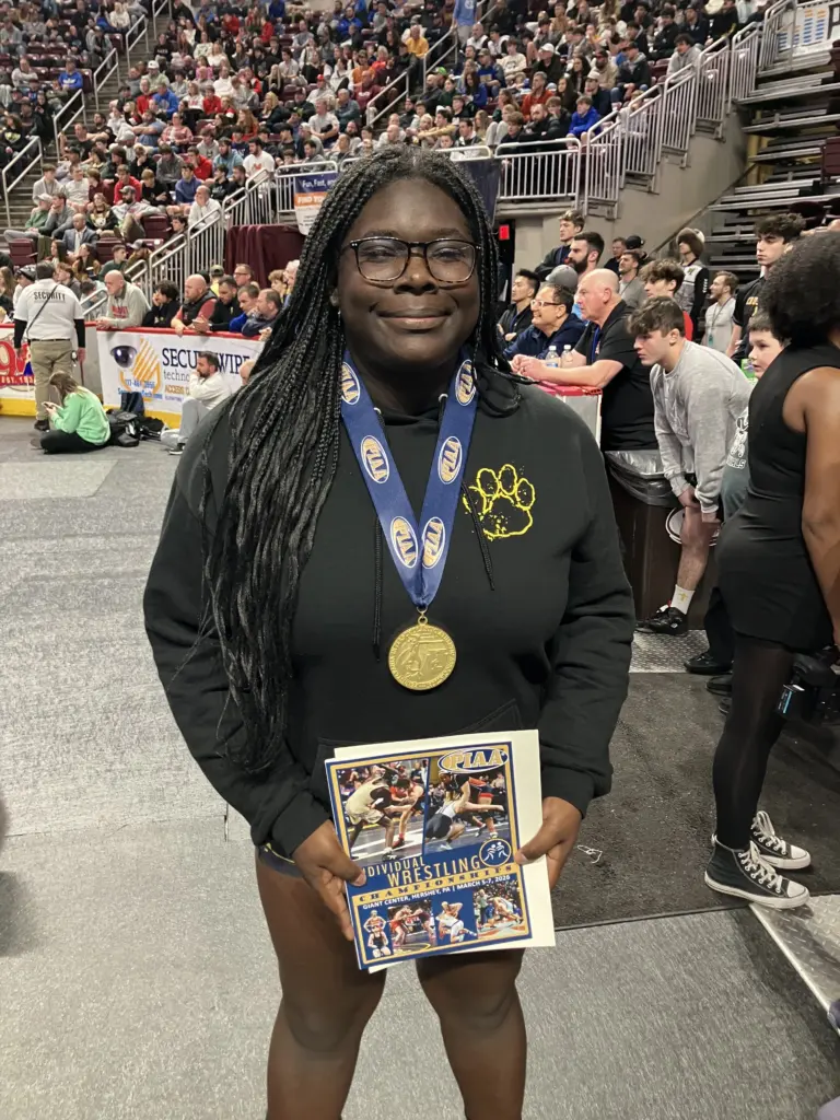 Panther Valley’s senior star 235-pounder completed an undefeated run through the PIAA Wrestling Championships, pinning Southmoreland’s Zoey Murphy in 4:43 to clinch her fourth state title. The first came before girls’ wrestling officially became a sanctioned varsity sport, and she won the last three under the PIAA banner.