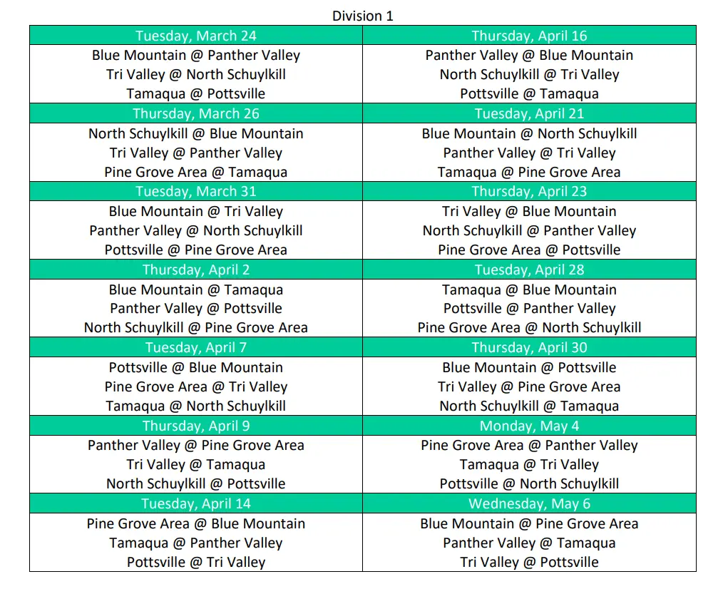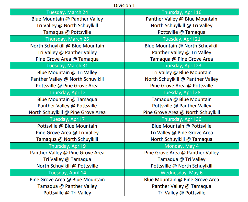 Each team will play a 12-game league schedule, facing division opponents in home-and-home series. With only three teams advancing to the Schuylkill League playoff tournament, every game will carry significant importance in what is expected to be a tightly contested race.
