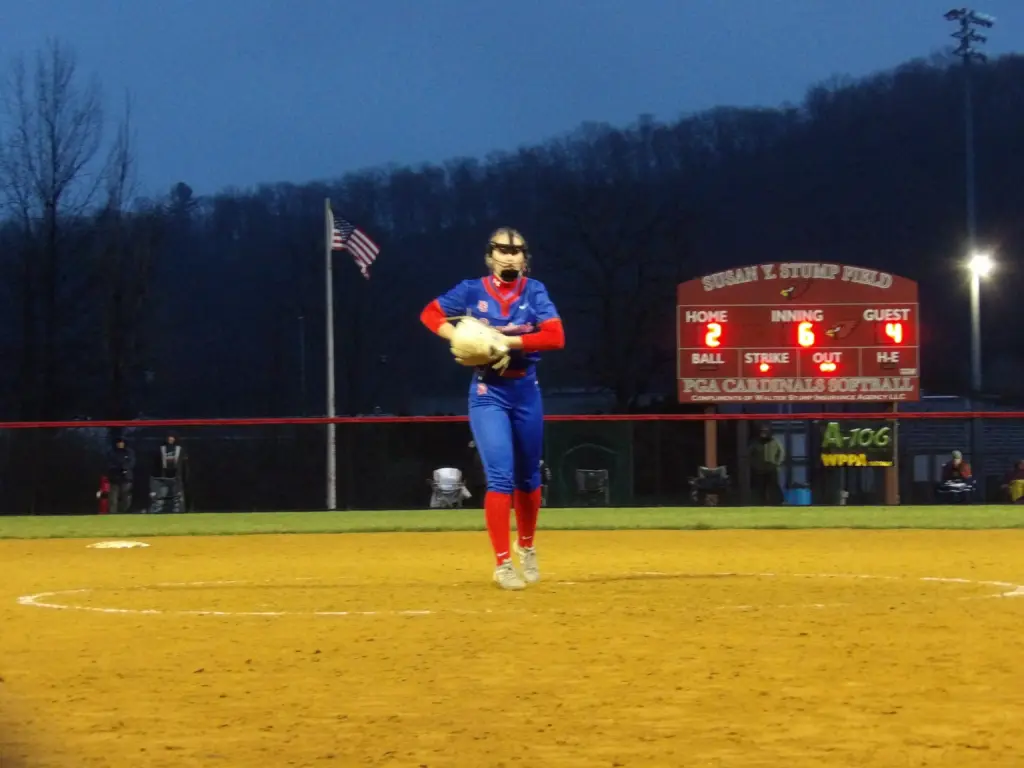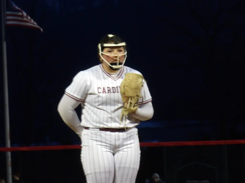 Flynn didn’t have a strikeout, but she made Pine Grove hit a lot of balls in the air. Thirteen of the Cards’ 21 outs came on fly balls.