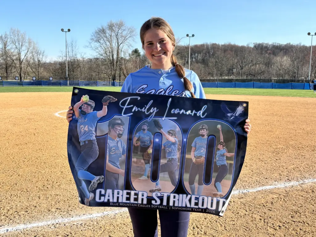Blue Mountain’s Emily Leonard recorded her 100th career strikeout during a Schuylkill League Division I game against Pottsville on April 7, 2026, at Patton Field. (Photo courtesy of Blue Mountain Athletics)