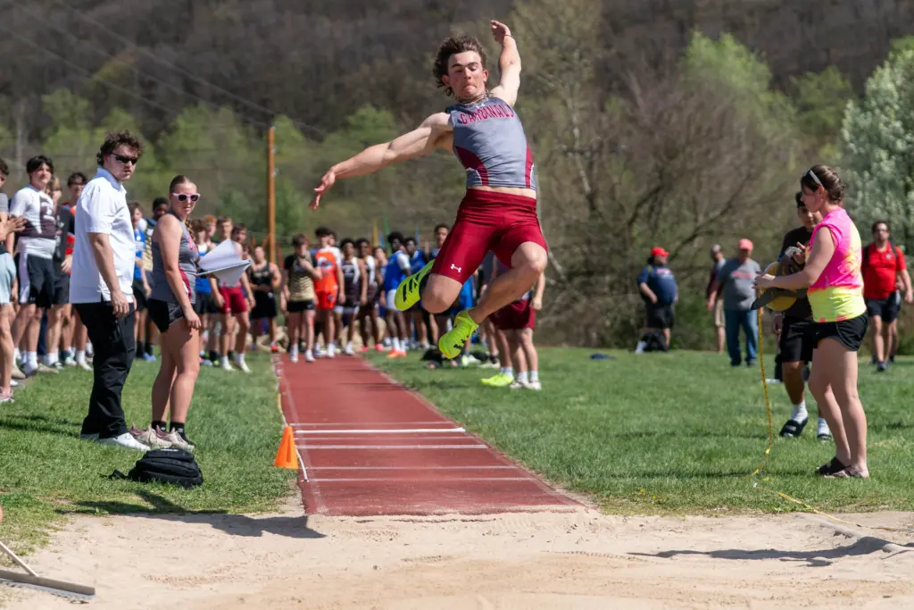 Marian’s Jacob Tom won a pair of events, taking first in the long jump and triple jump.